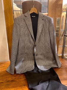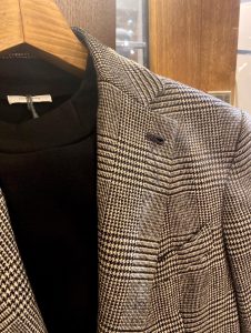 投稿日: 2025年10月9日2025年10月11日 投稿者: adminグレンチェックJK Finjackのグレンチェックジャケット。 伝統的でクラシックな柄をグレーでトーンを抑え、ナポリ仕立ての軽量で柔らかなジャケットです。 チェックのサイズも絶妙で、主張し過ぎなくスタイリングに溶け込みやすい大きさなのもポイント◎ タイドアップしたドレススタイルやデニムとのジャケットスタイルに。 インナーにはブラックニットがオススメです。 トラディショナルな雰囲気の中に、ナポリ仕立ての軽い着心地、非常に着用しやすいジャケットです。 ¥88,000 (¥80,000)